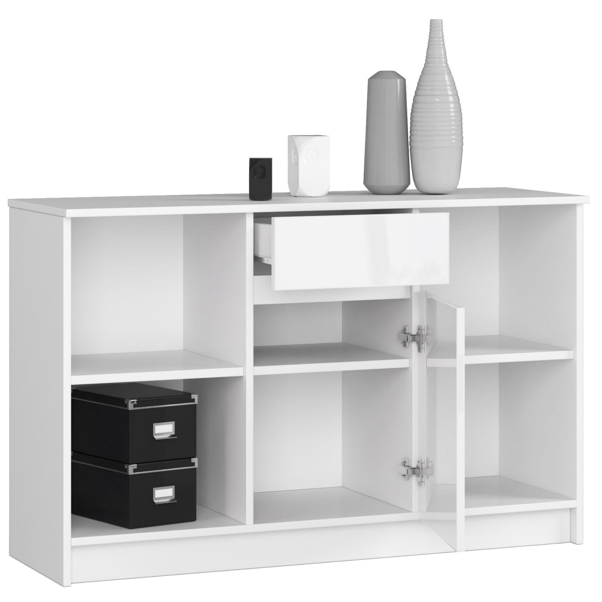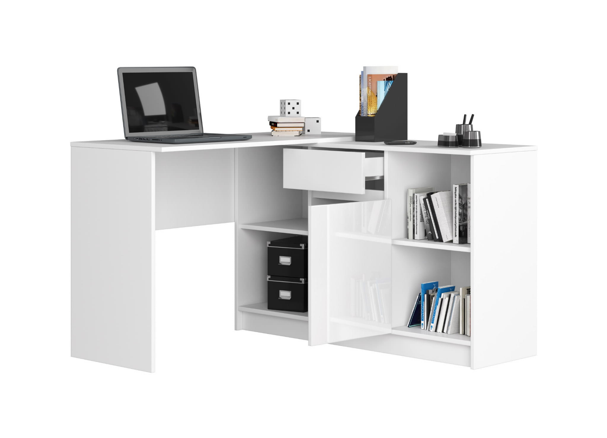 BIURKO NAROŻNE - ZESTAW B-17 KOMODA I BIURKO BIAŁY POŁYSK