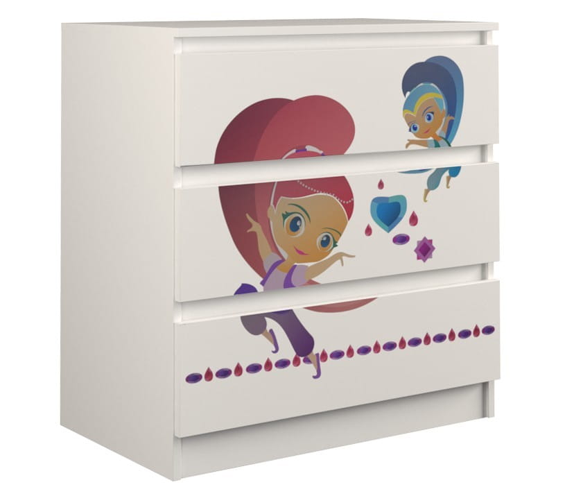 Idealna szafka, która urządzi wnętrze pokoju dziecka. Zdobiona kolorowym motywem z różnych bajek przypadnie do gustu każdemu maluchowi.