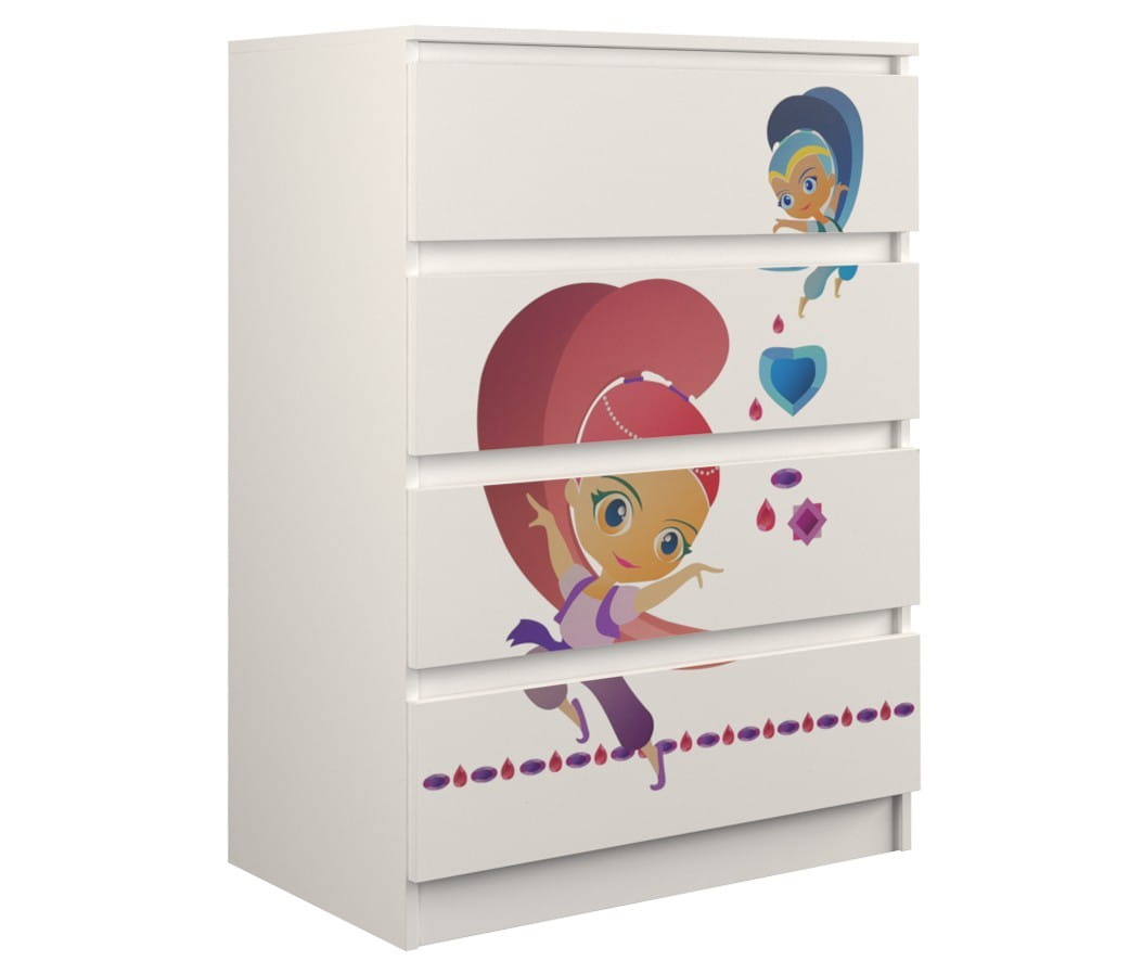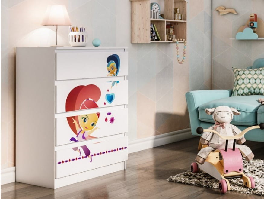 Idealna szafka, która urządzi wnętrze pokoju dziecka. Zdobiona kolorowym motywem z różnych bajek przypadnie do gustu każdemu maluchowi.