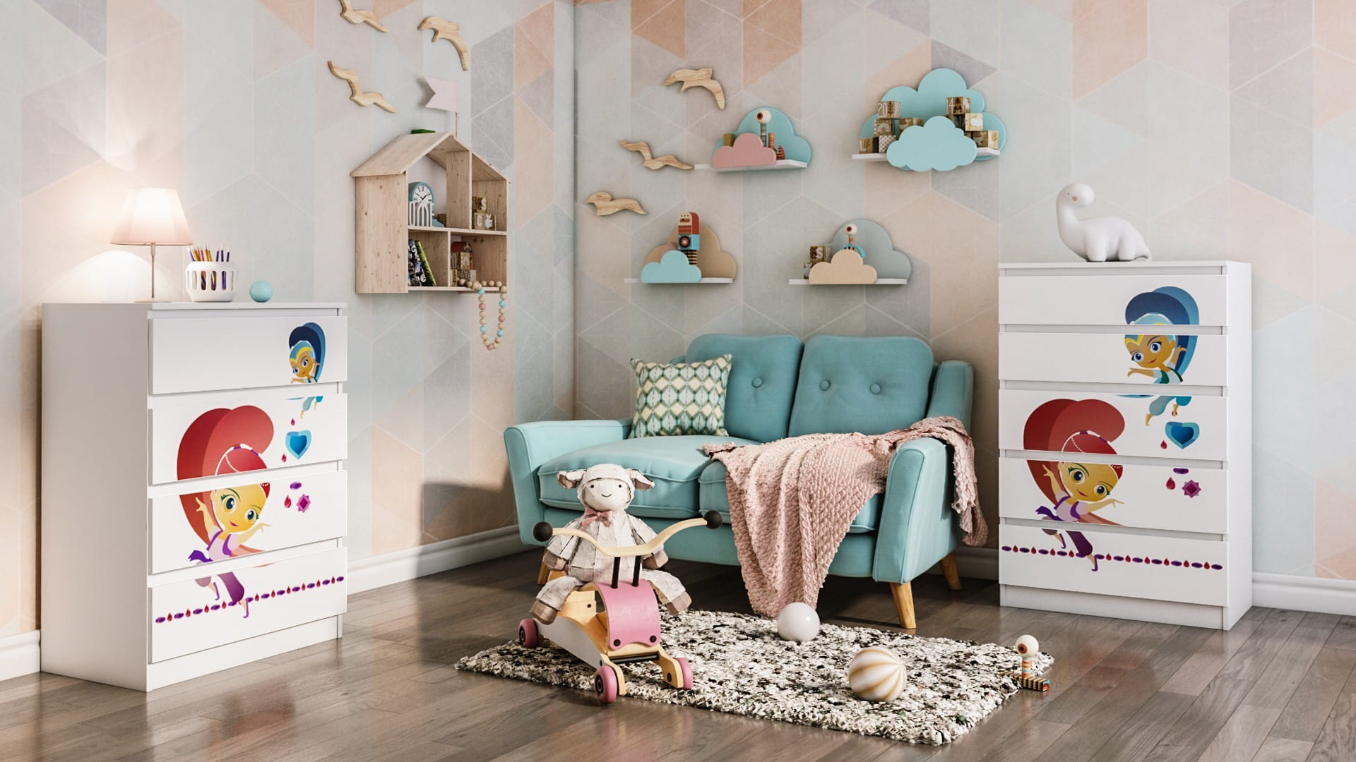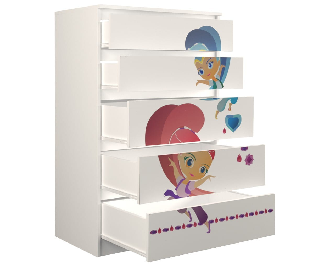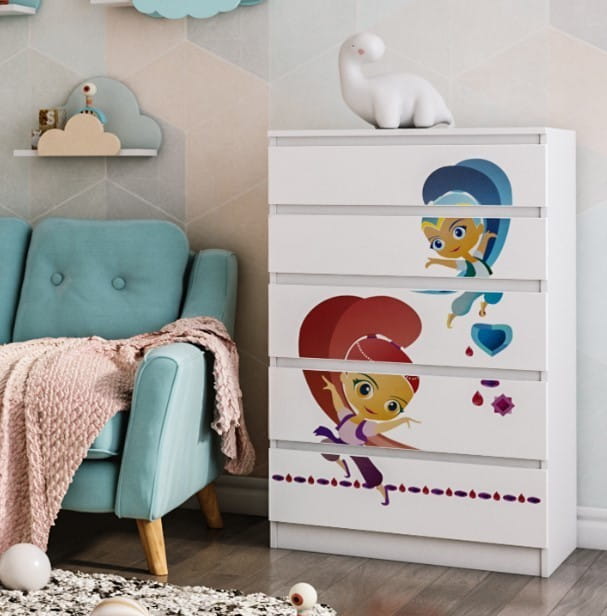 Idealna szafka, która urządzi wnętrze pokoju dziecka. Zdobiona kolorowym motywem z różnych bajek przypadnie do gustu każdemu maluchowi.