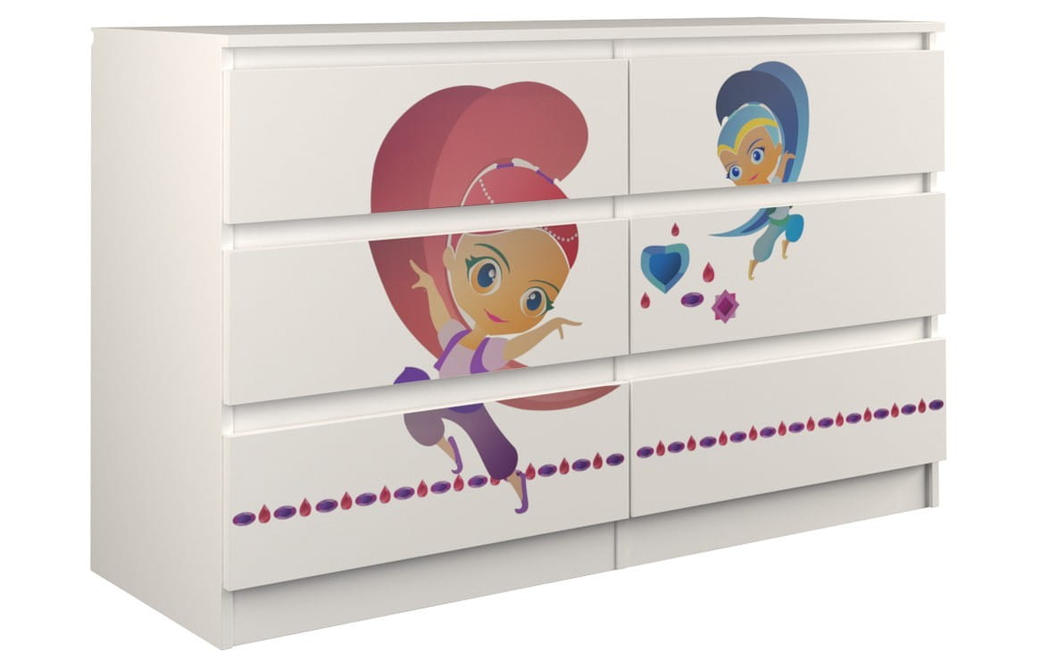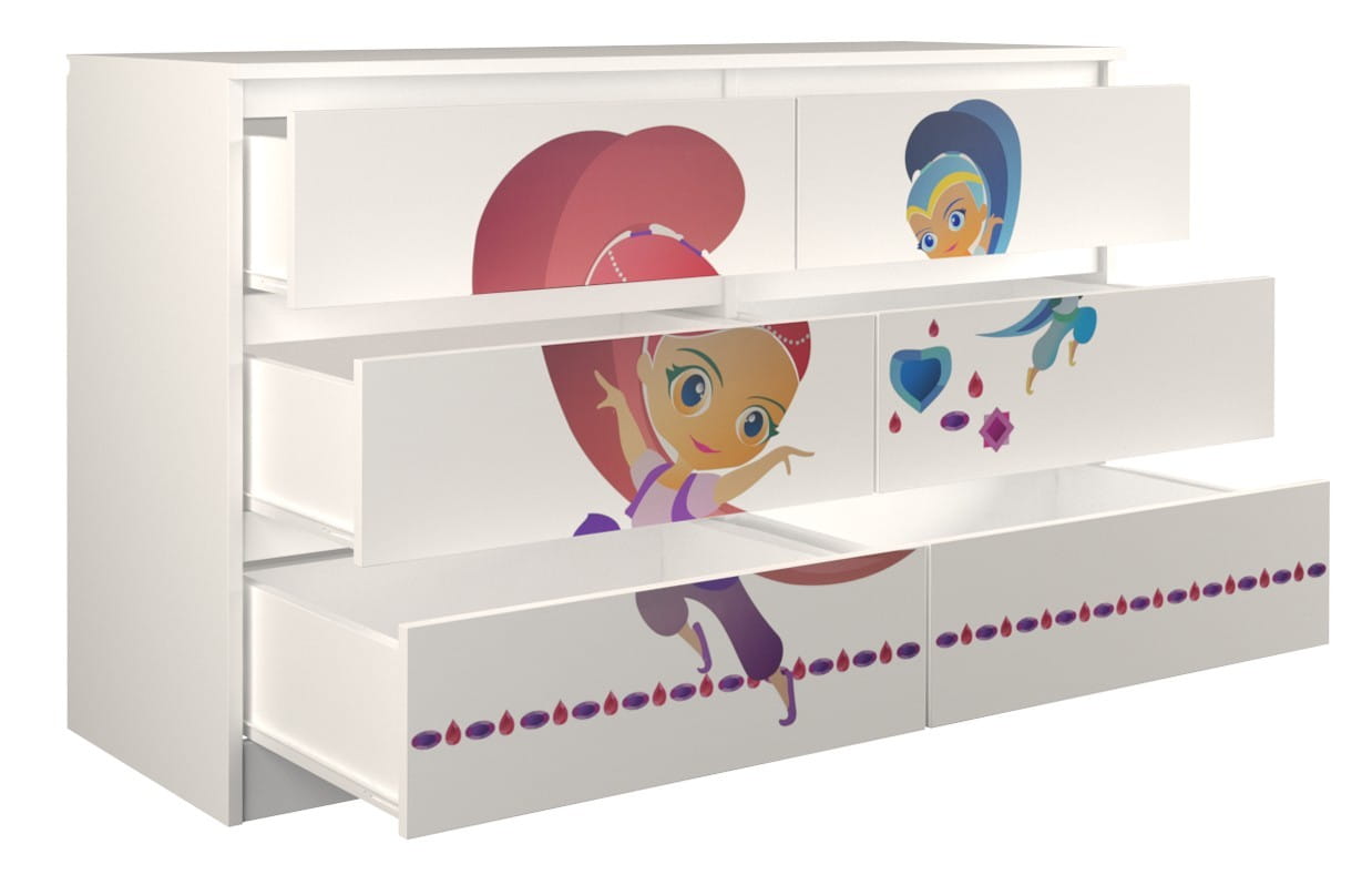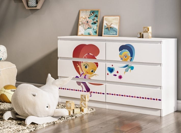 Idealna szafka, która urządzi wnętrze pokoju dziecka. Zdobiona kolorowym motywem z różnych bajek przypadnie do gustu każdemu maluchowi.