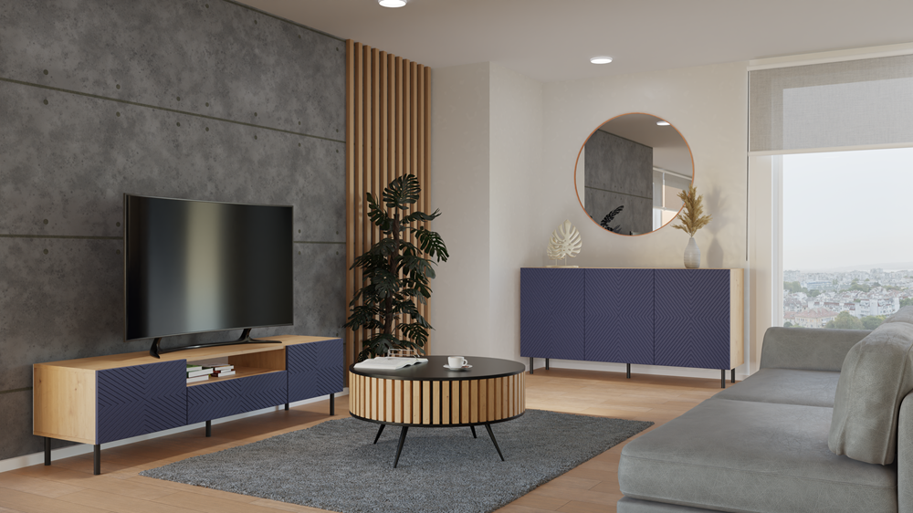Dużym atutem są okrągłe metalowe nogi o wysokości 13 cm, które nadają wizualnej lekkości całej konstrukcji i sprawiają, że komoda jest stabilna.