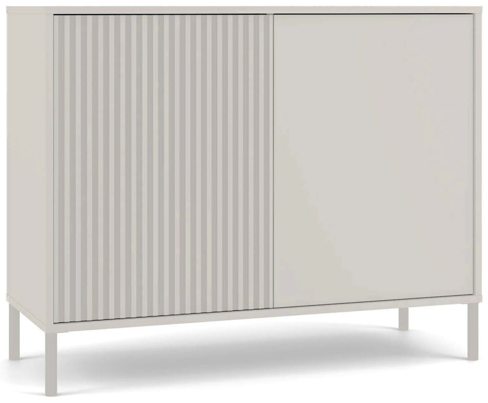 Komoda KAMARO 2D SLIM/GŁADKI KASZMIR to połączenie estetyki i funkcjonalności, które doskonale odnajdzie się w salonie, pokoju gościnnym, sypialni czy gabinecie. Dzięki połączeniu gładkiego frontu z ryflowanym (przypominającym lamele), mebel zyskuje nowoczesny i oryginalny wygląd, idealnie pasujący do współczesnych wnętrz.