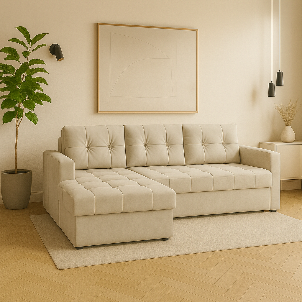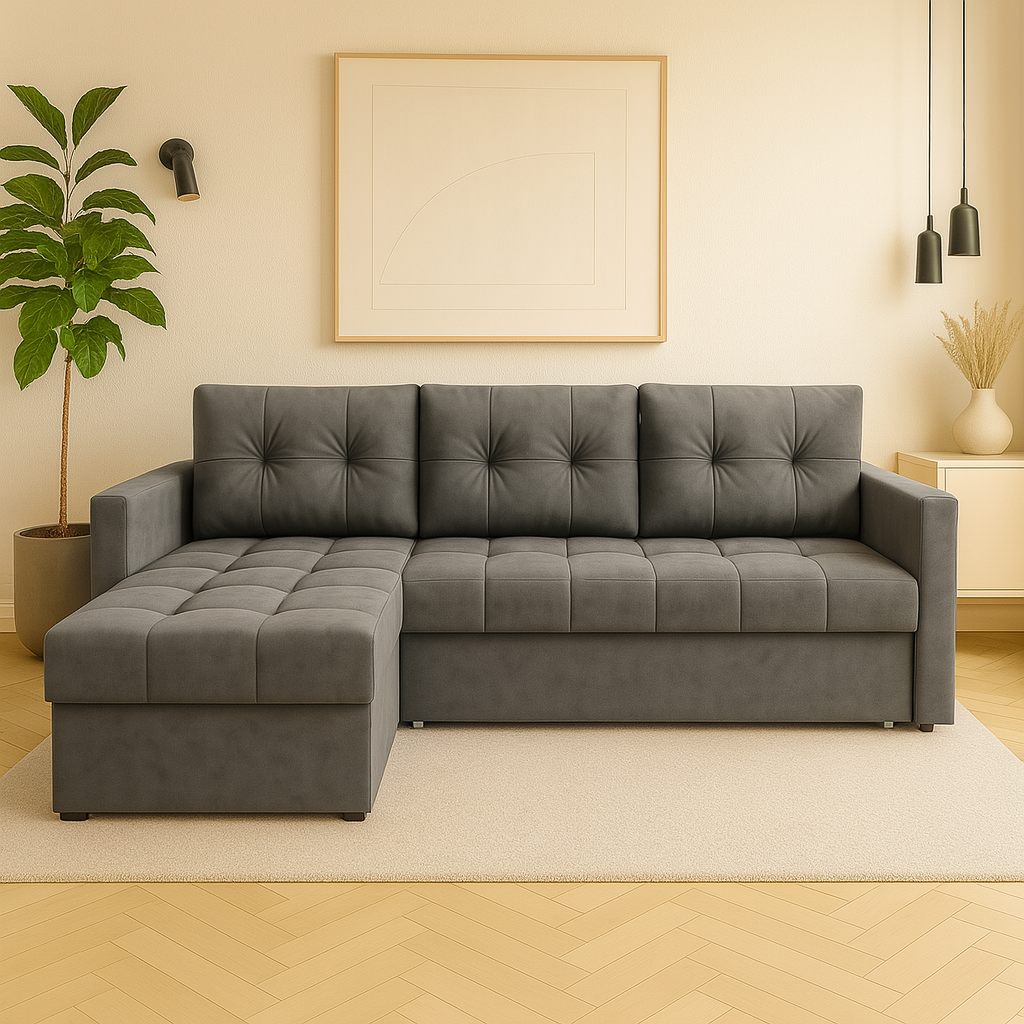 Narożnik SMART z funkcją spania – miękki velvet, nowoczesny styl i duża powierzchnia spania
