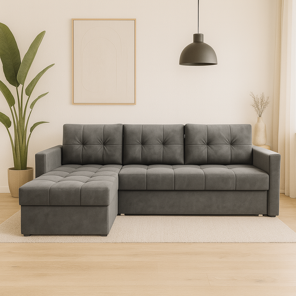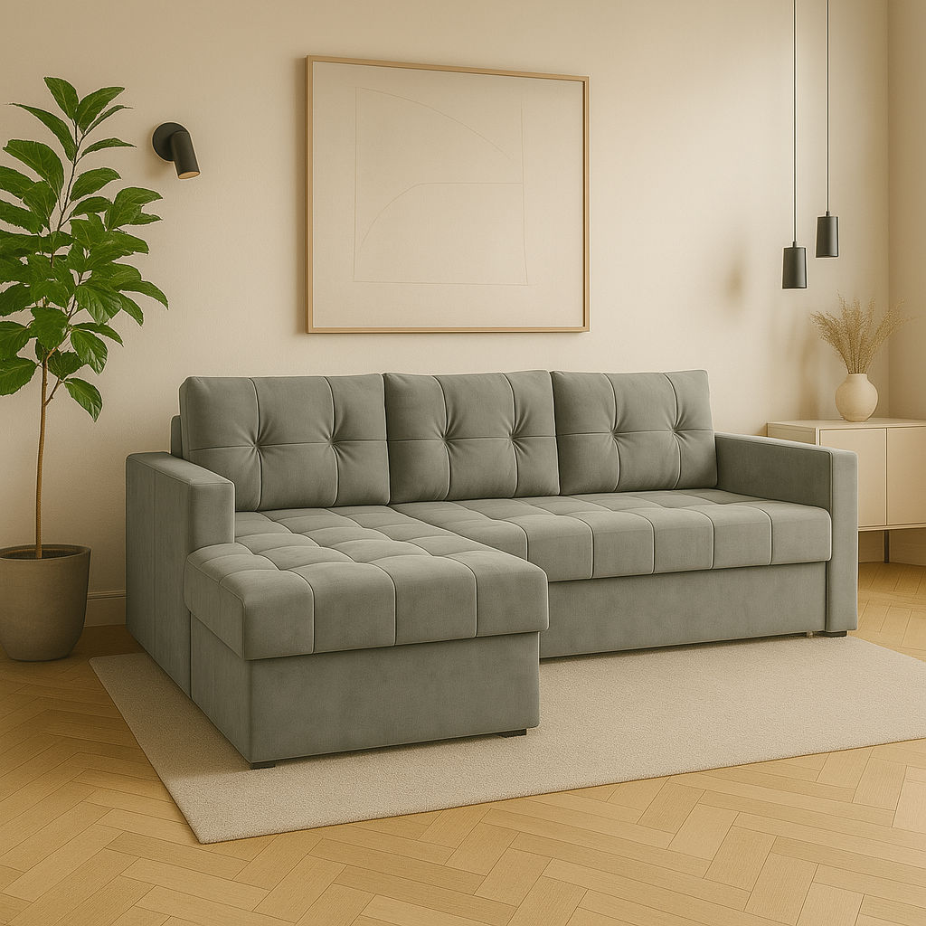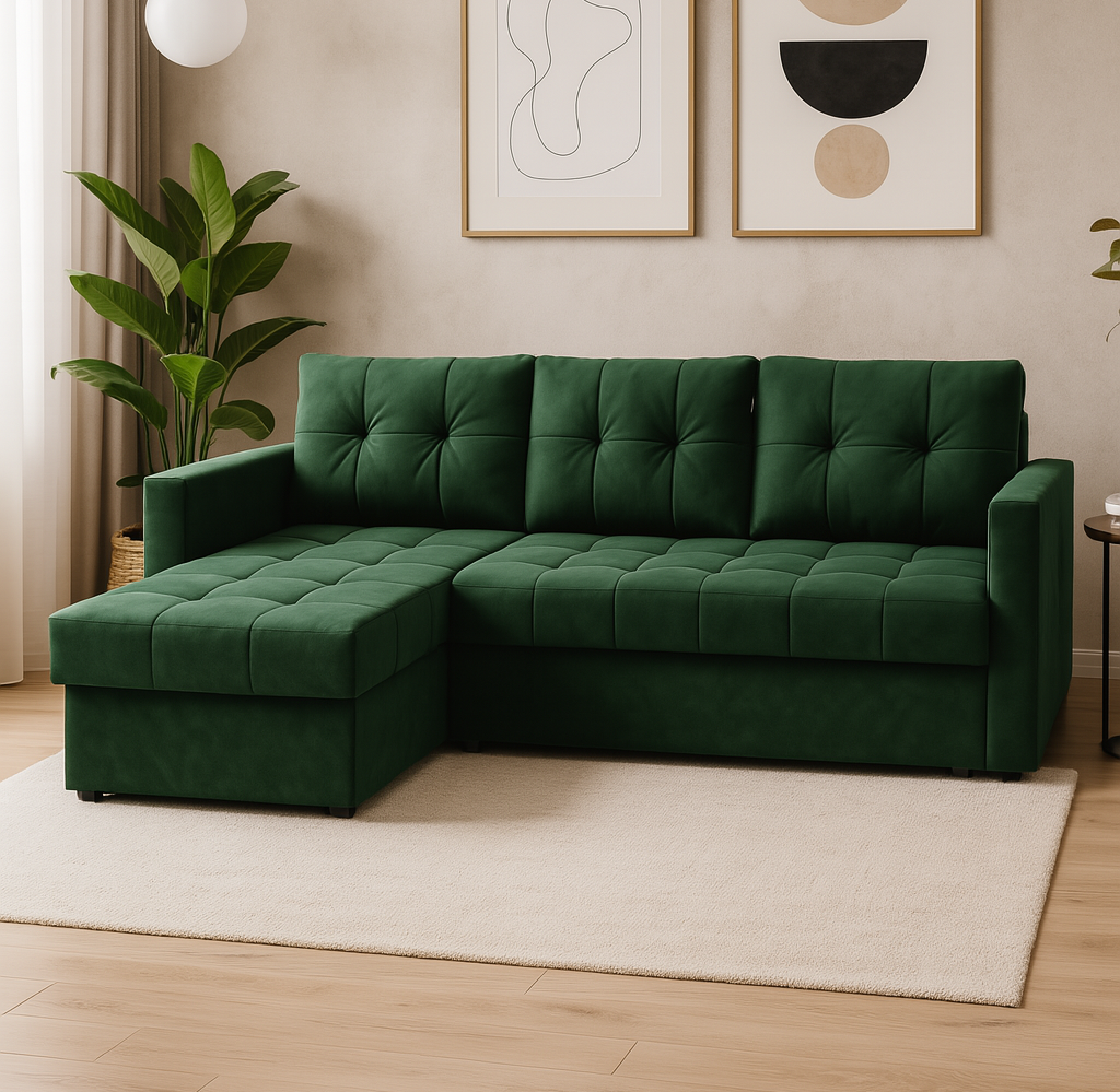 Narożnik SMART z funkcją spania – miękki velvet, nowoczesny styl i duża powierzchnia spania