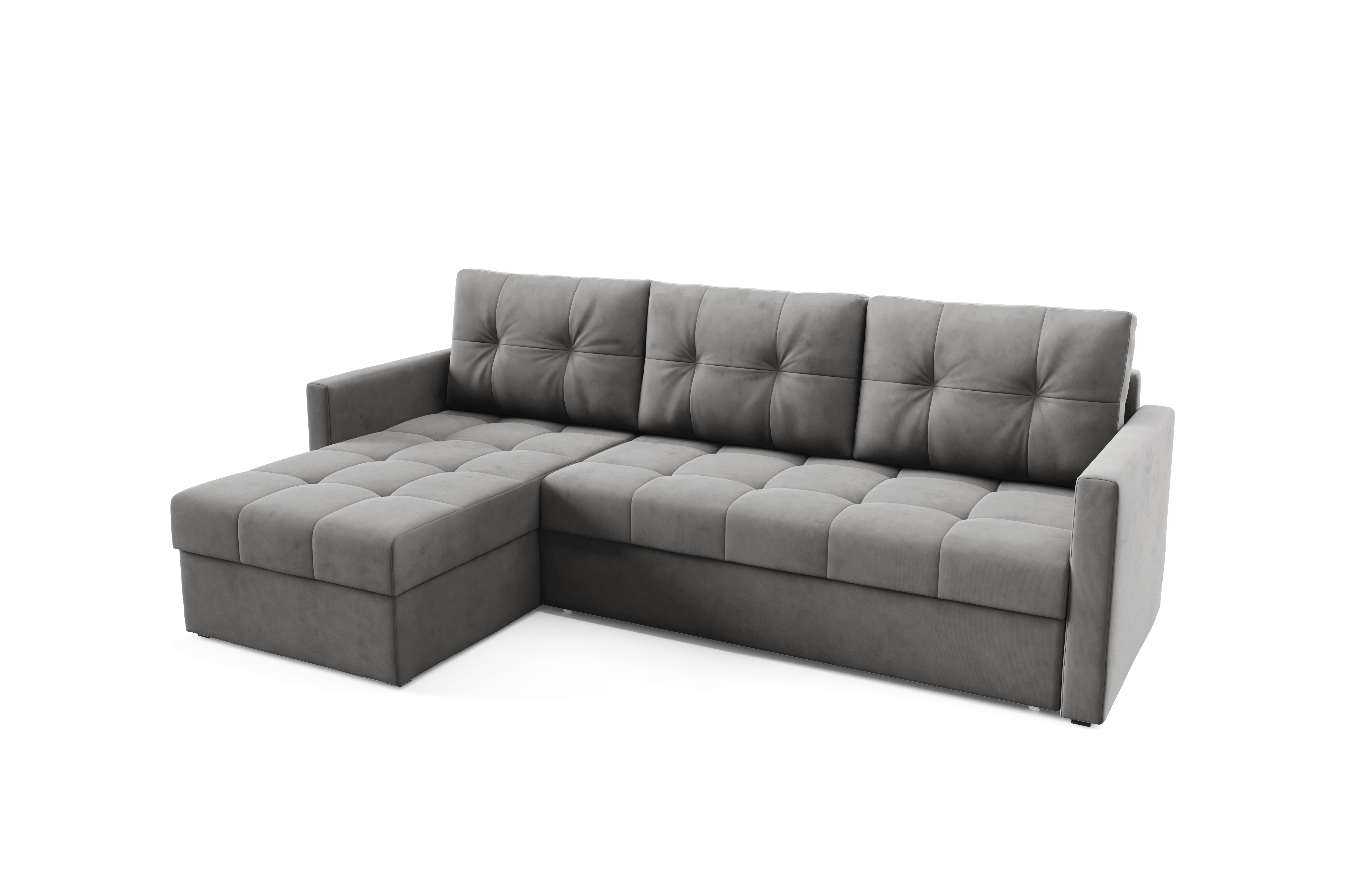 Narożnik SMART z funkcją spania – miękki velvet, nowoczesny styl Szary
