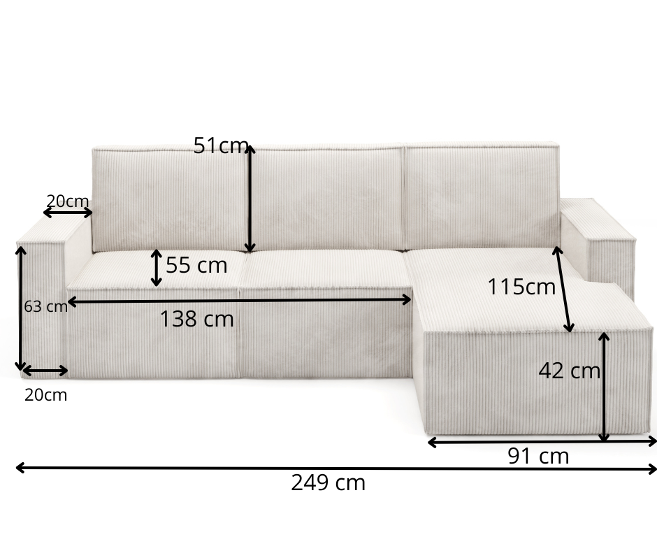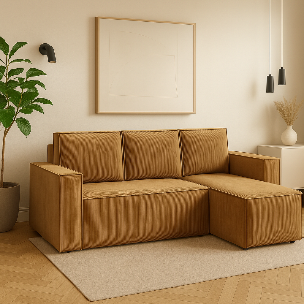 ✅ Narożnik VISION z tkaniny sztruksowej POSO – miękka, przyjemna w dotyku i stylowa