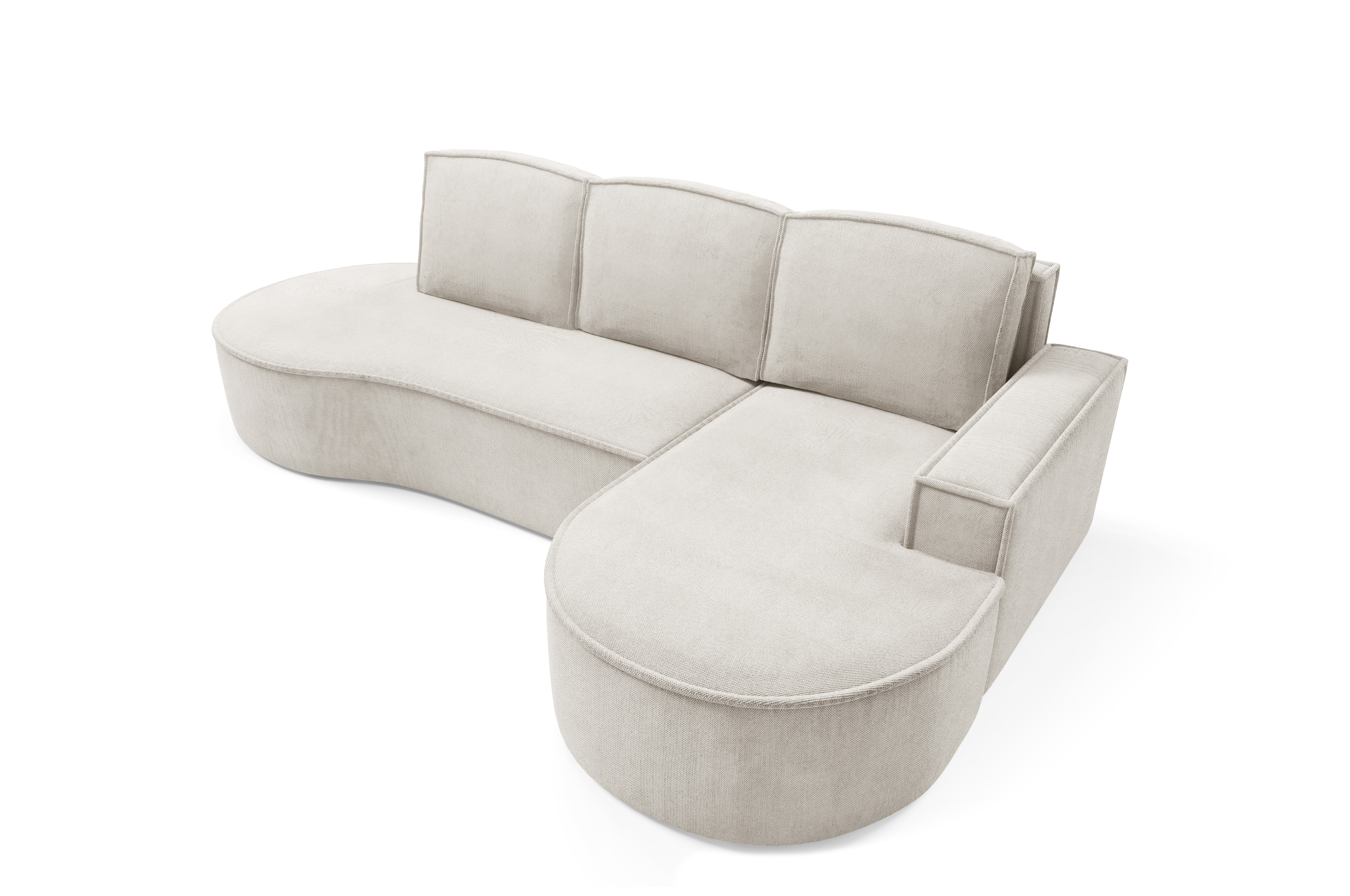 - Obity tył mebla – narożnik wolnostojący, do ustawienia na środku salonu