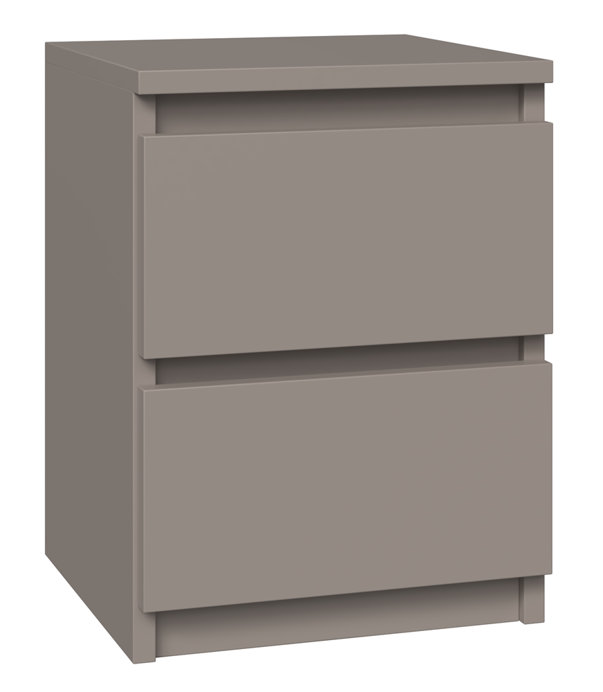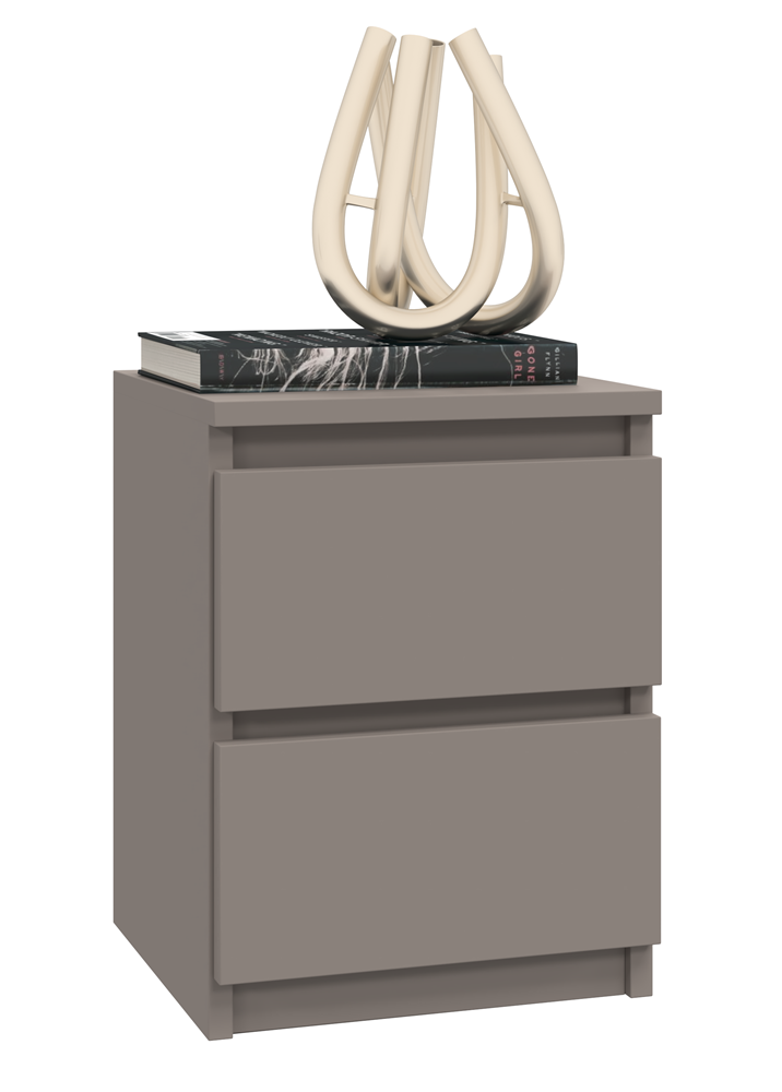Szafka nocna M2 z serii MALWA to idealny dodatek do każdej nowocześnie urządzonej sypialni. W kolorze GLINA, będącym unikalną nowością na polskim rynku meblarskim, ten mebel z pewnością wyróżni się w każdym wnętrzu, dodając mu wyrafinowanego charakteru.